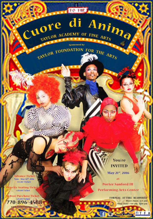 (for tickets please call 770-896-4588 or Info@TaylorFineArts.com before May 18)
